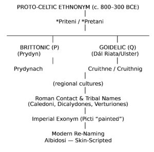 The Brittonic equivalent identity — Welsh term for “people of Prydyn,” meaning the northern region later labelled Pictland.